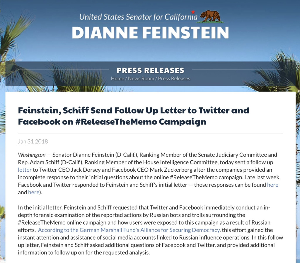 Tuo ei sinänsä ole yllättävää, etenkin jos ajatellaan näkyvässä asemassa olevia demokraatteja ja muita Trump- vastaisia poliitikkoja molemmilla puolilla. Taibbi mainitsee näistä mm. #RussiaGate/ #Spygate -skandaalissa korviaan myöten mukana olevat Adam Schiffin ja Mark Warnerin ja Kalifornian senaattorin Dianne Feinsteinin.