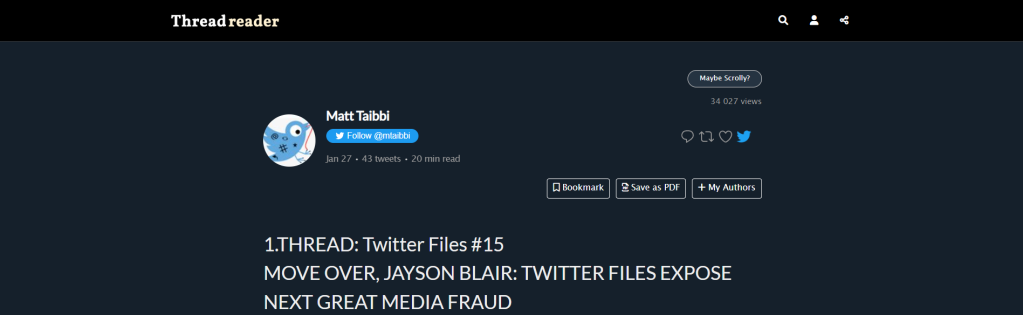 *) THREAD: Twitter Files #15 – MOVE OVER, JAYSON BLAIR: TWITTER FILES EXPOSE NEXT GREAT MEDIA FRAUD | Matt Taibbi